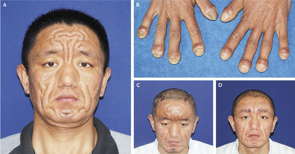 Clinical features of Pachydermoperiostosis syndrome showing skin involvement [1].